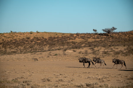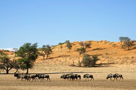 Wildebeest (Connochaetes taurinus) in the Kalahari desert