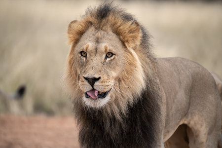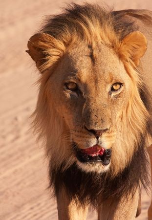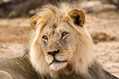 Portrait of a big male African lion (Panthera leo), Kalahari desert, South Africa