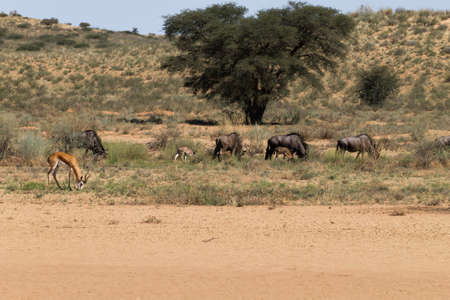 Blue wildebeest, Connochaetes taurinus, in Kalahari desert, Namibia.