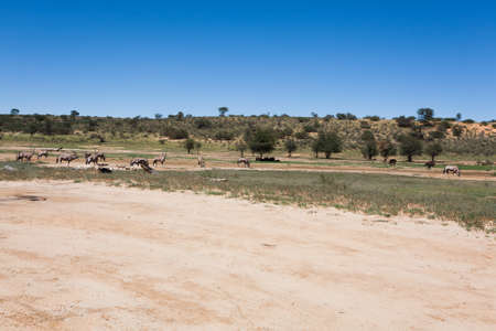 Gemsbok, Oryx gazella in Kalahari, green desert after rain season. Kgalagadi Transfrontier Park, South Africa wildlife safari