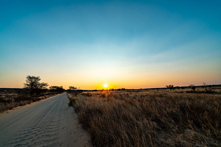 Scenic route at sunset in Kgalagadi Transfrontier Park, South Africa