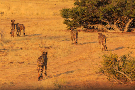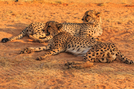 Cheetahs in the Namibian savannah. The fastest cats in the world. African landscapes. Solitaire, Namibia, South Africa.