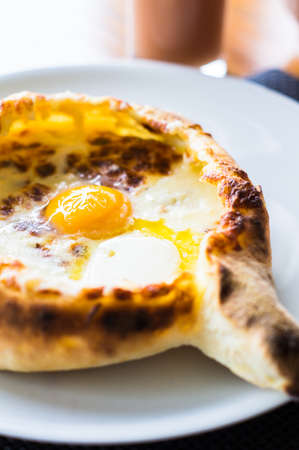 Baked bread with cheese and egg filling. khachapuri is a traditional Georgian cuisine.