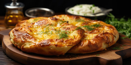 The national dish of Georgia, Khachapuri. Dish close-up. Generative AI