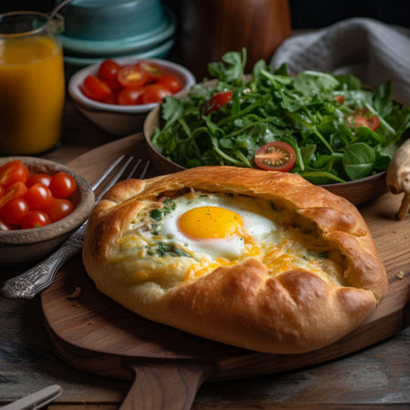 Khachapuri, Georgian cheese-filled bread, delicious and savory