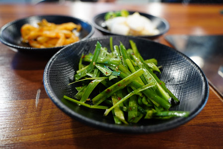Korean Side Dishes with Fresh Garlic Chives and Assorted Banchan