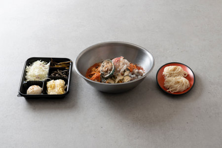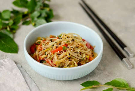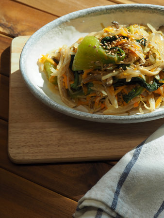 Korean traditional food vegetable bibim noodles, guksu