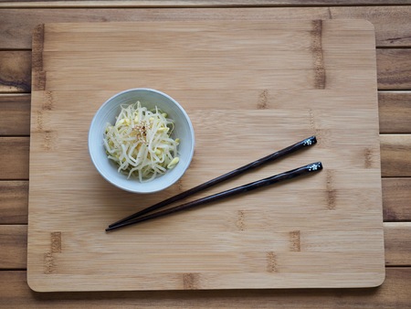 Korean traditional food bean sprouts seasoning and chopsticks