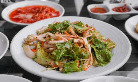 Korean Spicy vegetable salad with side dish.