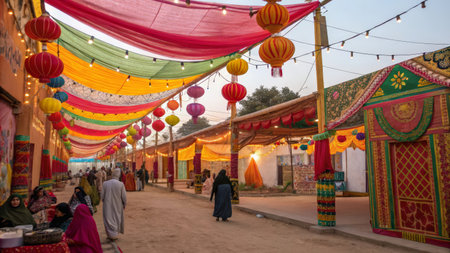 Sehwan Sharif Common Street Picturesque View of a Roundabout During Eid Al Fitr on a Sunny Blue Sky Day