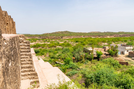 Jhelum Rohtas Qila Fort in Punjab Province Picturesque Breathtaking View of the Walls on a Sunny Blue Sky Day