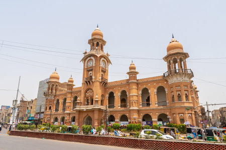 Multan Ghanta Ghar Clock Tower City Government Headquarter Picturesque View with Busy Road Traffic on a Sunny Blue Sky Day