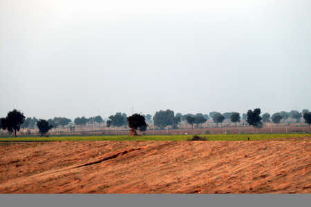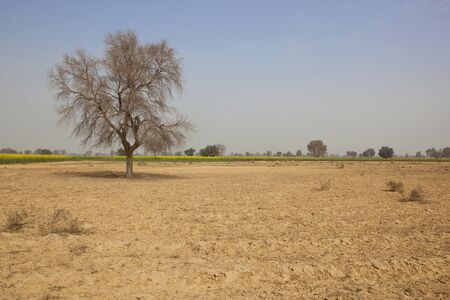 a lone tree in the semi desert landscape of abohar rural in ferozepur district of rajasthan north india