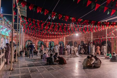 LAHORE, PAKISTAN - OCTOBER 20, 2023: Devotees at Sufi Saint Shah Jamal Tomb in Lahore participating in Urs festival, Pakistan
