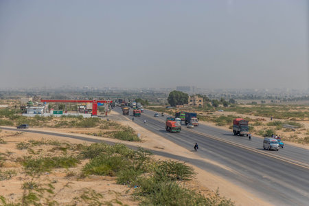 HYDERABAD, PAKISTAN - OCTOBER 31, 2023: M-9 (Karachi–Hyderabad) motorway in Sindh province, Pakistan