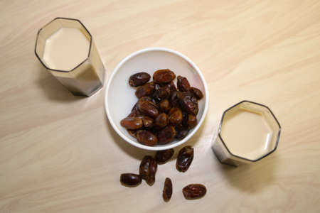 A small bowl of dates is served as a menu for breaking the fast with a Tosca background for the blessed month of Ramadan