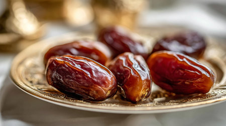 Sweet Dates Arranged on a Decorative Plate Ready to Break Fast