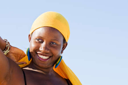 Portrait of a beautiful young African woman smiling at the camera.