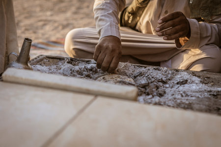 Bedouin man baking bread on hot ashes in the desert of Marsa Alam, Egypt, using traditional methods