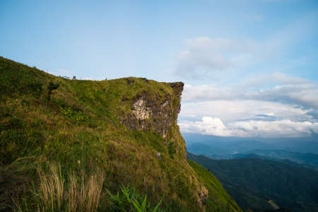 mountain and cliff with fog on sunrise at phucheefah, chiang rai province, thailand