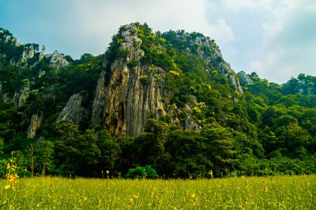 Landscape. Beautiful sunrise at Phu Lang Ka, Phayao in Thailand.