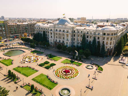 Aerial view of Karazin University on Freedom Square in Kharkiv by day