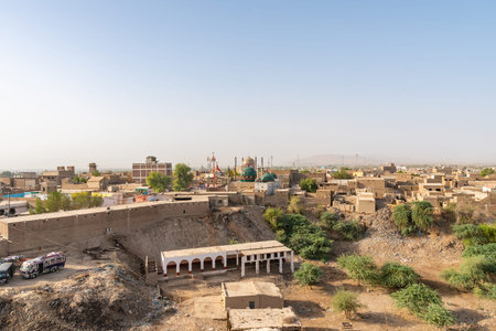 Sehwan Sharif Fort Wall Ruins Picturesque View of Cityscape During Eid Al Fitr on a Sunny Blue Sky Day