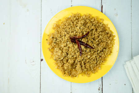 Crispy catfish with dried chilli on yellow dish