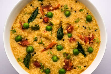 Upma, uppumavu or uppittu is Indian popular breakfast dish, most common in South and Maharashtra