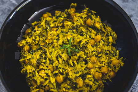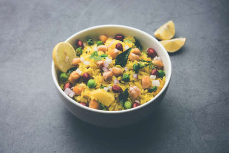 Power Kabuli Chana Poha or Protein Rich Choley Pohe, Popular Maharashtrian, Indian breakfast recipe, selective focus