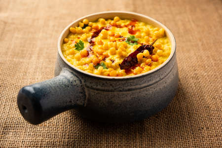Dal khichadi or Khichdi Tasty Indian recipe made of yellow moong dal and rice . Selective focus