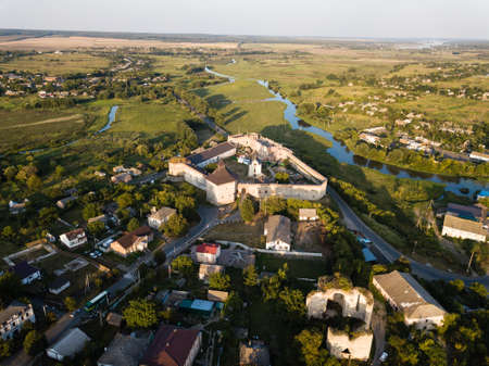 Aerial top view to famous ukranian sightseeing - Old palace castle in Pidhirci was build by Stanislav Koniecpolski, Lviv region, Ukraine