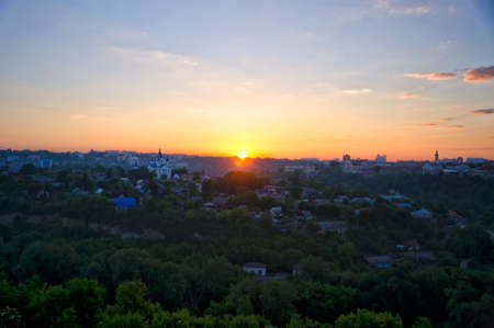 Vladimir city centre aerial panoramic view at sunset, Golden Ring of Russia