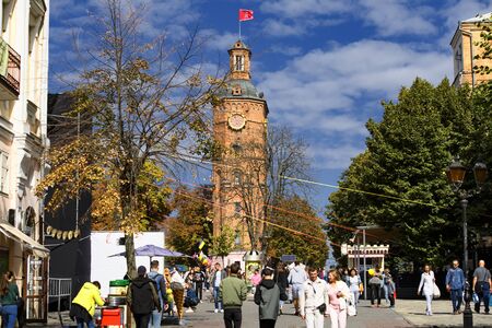 Vinnytsia, Ukraine - OCTOBER 03 2015: Center of the city with view to th old fire tower with clock, Vinnytsia, Ukraine