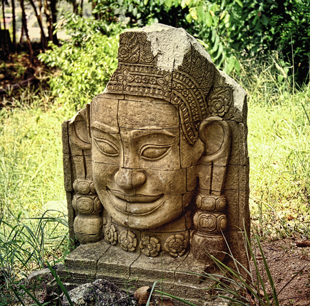 Ancient sculpture of the deity in the jungles of Southeast Asia.