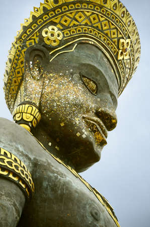Stone buddha statue guarding a temple in asia