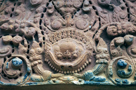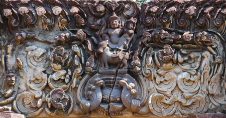 Carved statue in khmer buddhist temple, in thailand