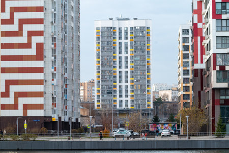 Moscow, Russia - June 15, 2024:: New modern residential complex Zilart in Moscow. Pedestrian street inside the ZilArt residential area in Moscow.