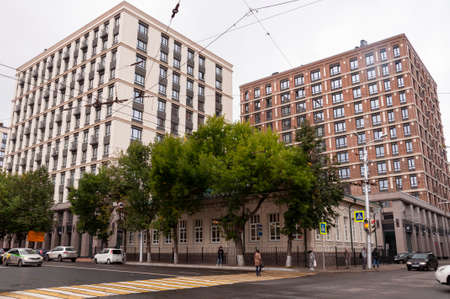 Moscow, Russia - May 24, 2021: View of Myasnitskaya Street and the building of the Higher School of Economics, National Research University