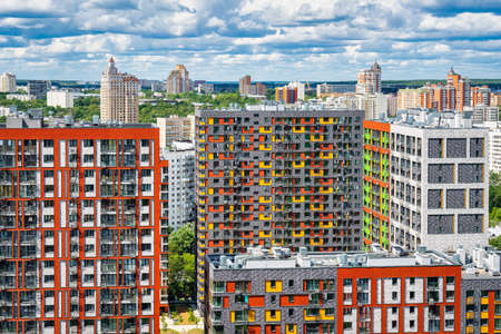 Multi storey houses of the big city in the daytime. Photo in the daytime.