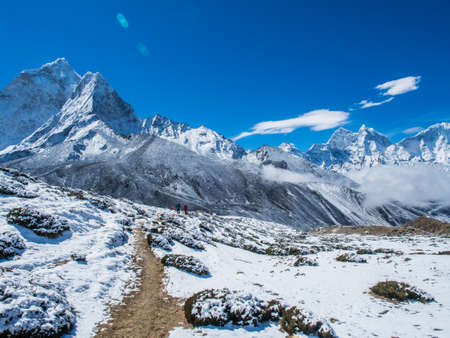 Trekking trail in Everest base camp trekking route, Himalaya mountain range in Nepal, Asia