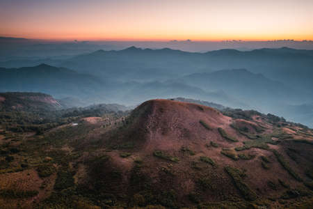 Beautiful dusk scene on the mountain in Doipui Chiangmai, Thailand at sunset.