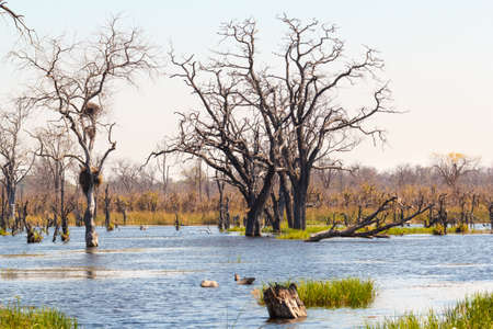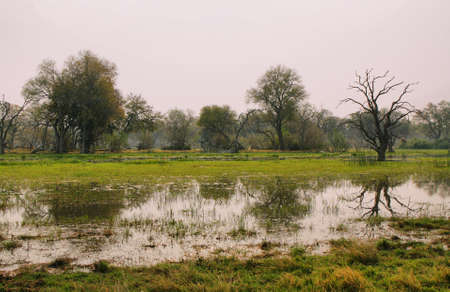 Flooded landscape of pools and trees on winter in Moremi game reserve, Botswana