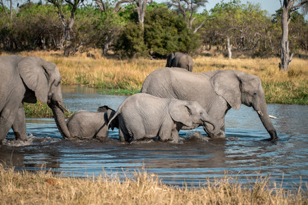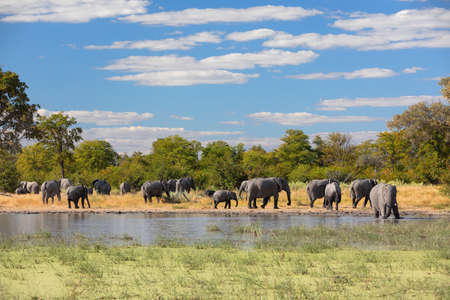 herd of african Elephant on waterhole in Moremi game reserve Botswana, Africa safari wildlife