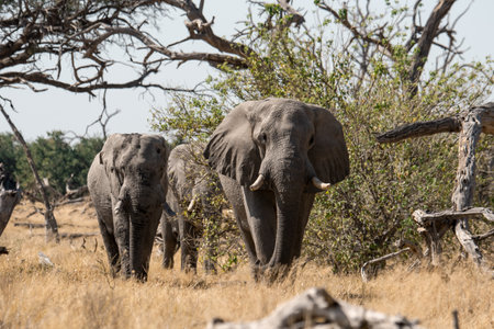 Wild African elephant walking through the savanna of Botswana. Africa.