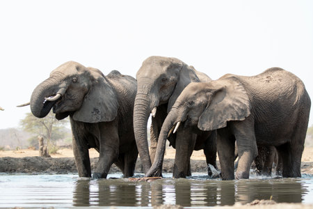 African elephant drinking water at Nehibma watering hole, Hwange National Park, Zimbabwe Africa