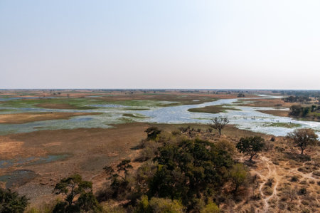 Aerial view at picturesque view of Okavango Delta, Botswana.