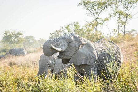 African Elephant (Loxodonta africana) walking in bushveld in early morning sun in Kruger national park South Africa