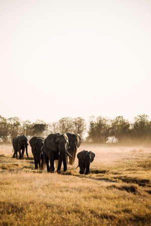 Herd of wild elephants walking Beautiful elephant in the savannah