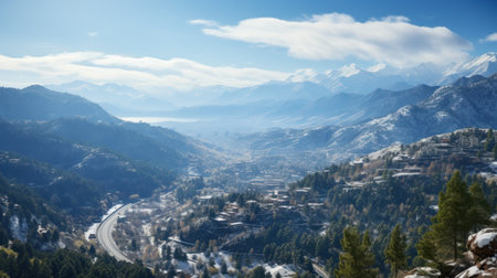 This captivating landscape features a stunning view of mountains and a lush valley under a clear sky. Perfect for travel enthusiasts and nature lovers.